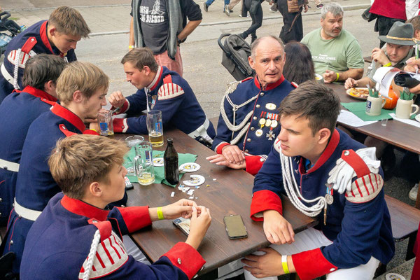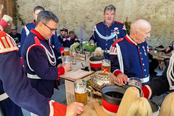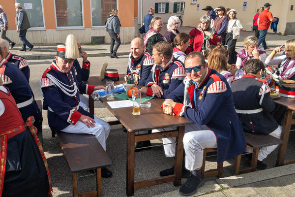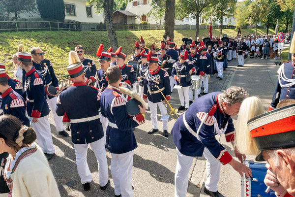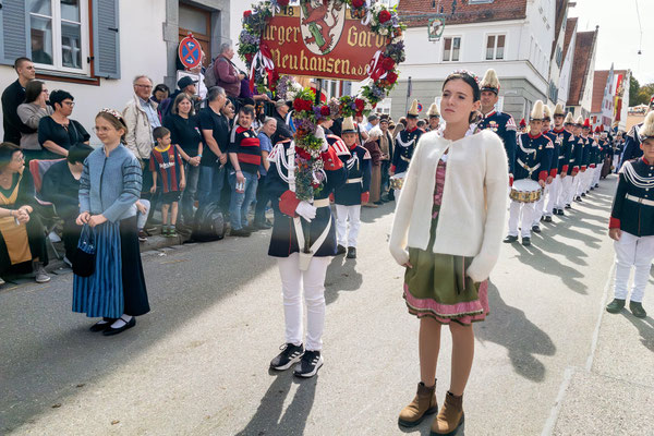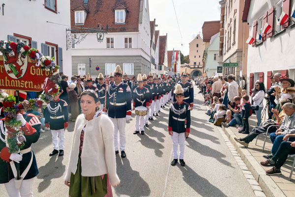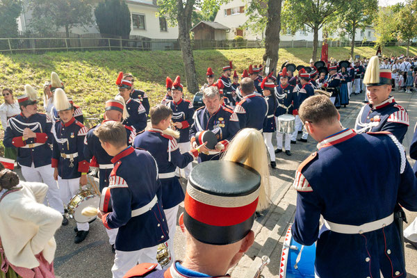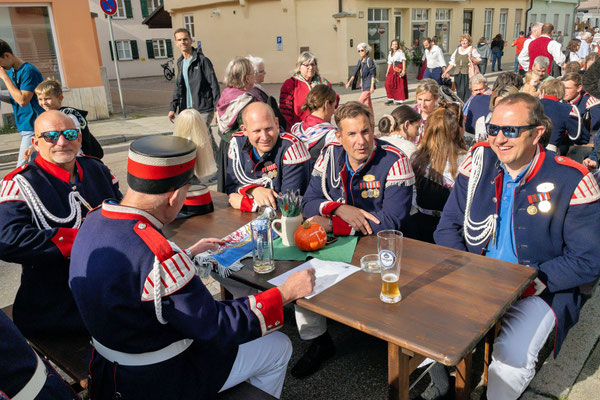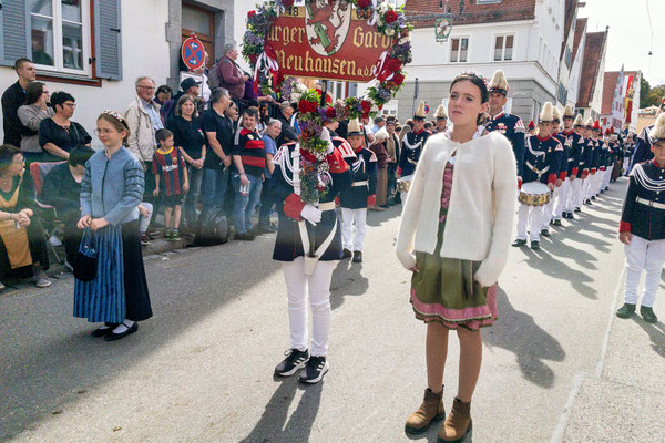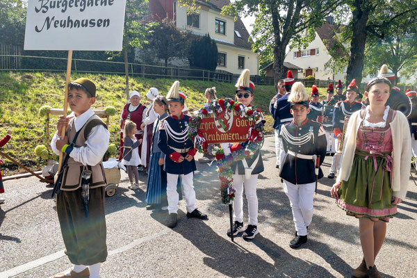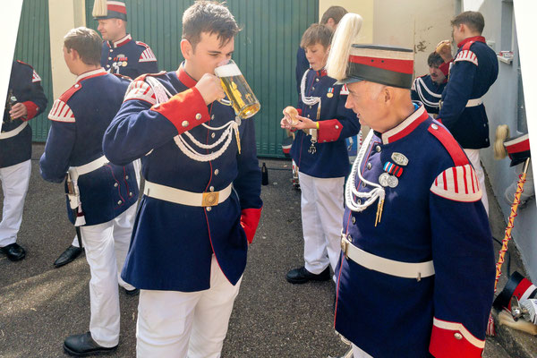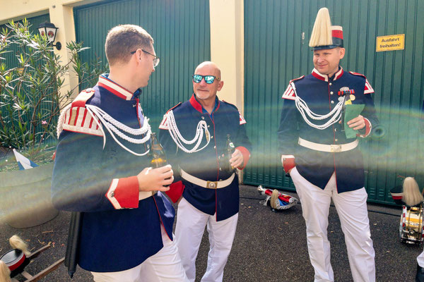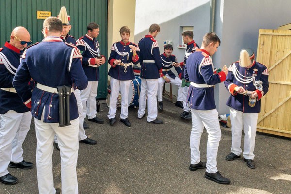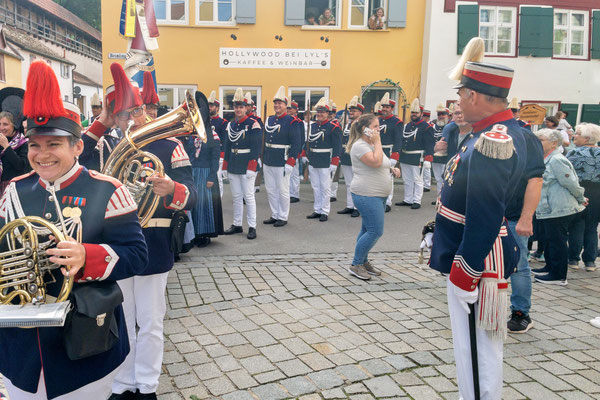 Gemeinsam mit den Bürgerfrauen nehmen wir am Brauchtumsumzug am Samstag teil, am Sonntag findet bekanntlich noch ein weiterer Festumzug statt. Als Nr. 44 reihen wir uns in den Festzug ein, der sich bei strahlendem Sonnenschein pünktlich um 14 Uhr in Bewegung setzt.