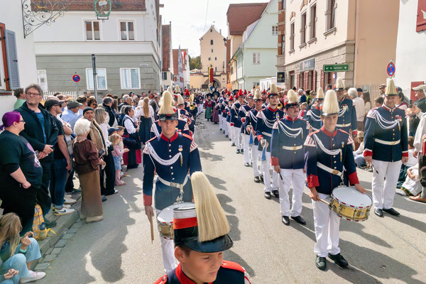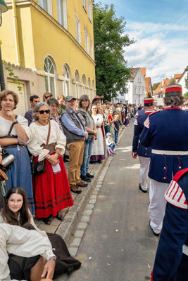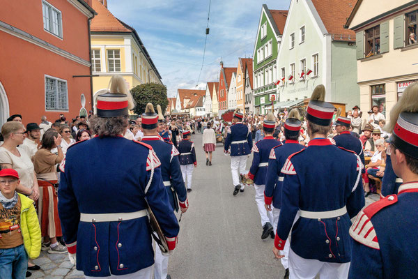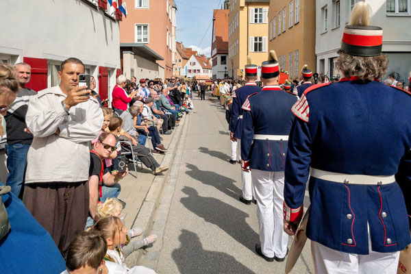 Es war bereits unsere vierte Teilnahme an diesem historischen Fest. Immer wieder beeindruckend die große Anzahl begeisterter Zuschauer, die dicht gedrängt die Straßen und Gassen säumten und die Teilnehmer mit viel Beifall die „Strapazen“ der fünf Kilometer Fußmarsch vergessen ließen. Danke Nördlingen, dass wir an diesem sehr schönen Fest teilhaben durften.