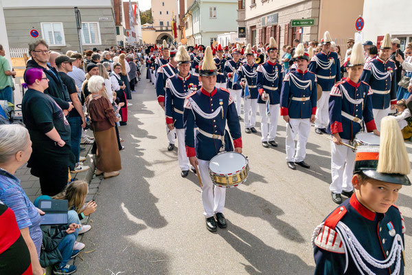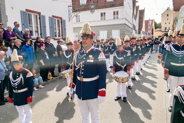 Über eine Stunde lang zogen wir unter wechselndem Spiel von Musik- und Spielmannszug durch die historischen Gassen der Stadt, vorbei an der Ehrentribüne unter den Klängen vom gemeinsam intonierten Marsch „Garden und Wehren“.