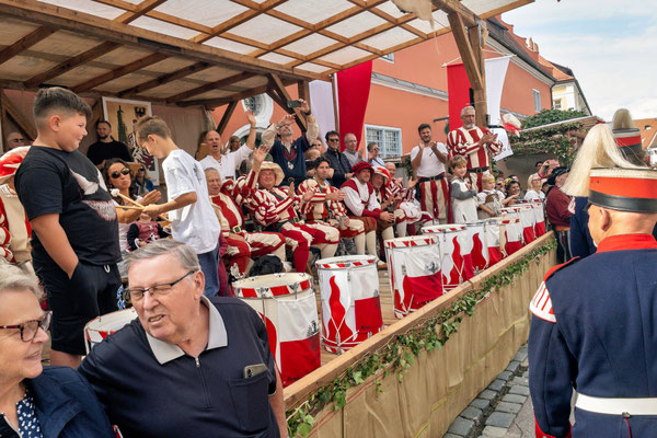 Besonders hervorzuheben die Leistung unserer jungen Kameraden Niklas und Emil – die beiden bildeten allein das Trommelregister im Spielmannszug. Das war eine großartige Leistung!